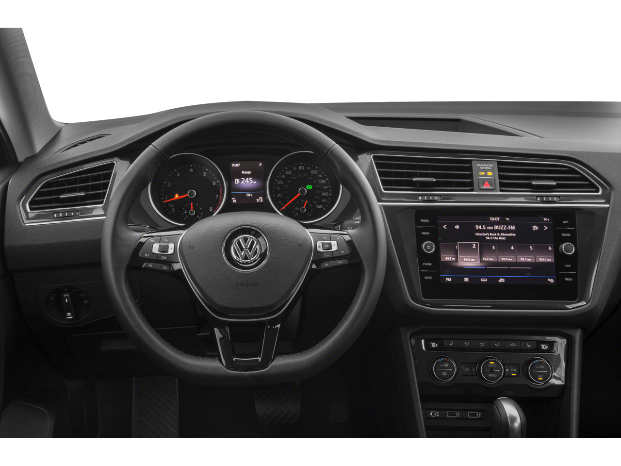 Inside our SE, sink into the 7-seat V-Tex heated leatherette seating. Bring the whole gang with the available 3rd-row, or fold down the 40/20/40-split sliding rear seats and adjustable seat backs for that extra cargo space. The interior's hub is the 8-inch Composition Color touchscreen sound system with HD and available Sirius satellite radio, a rearview backup camera, Volkswagen Car-Net App-Connect, and Bluetooth®.