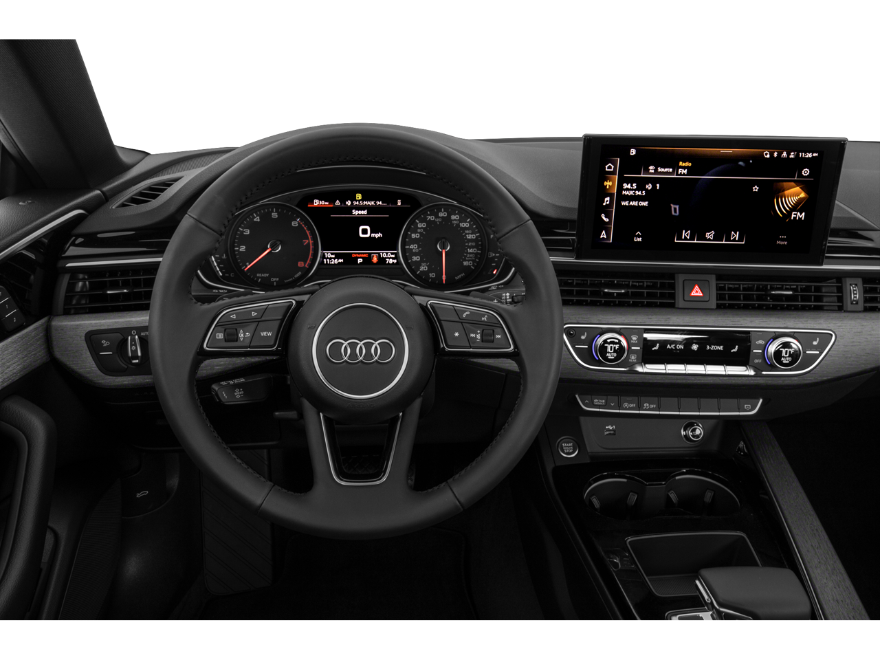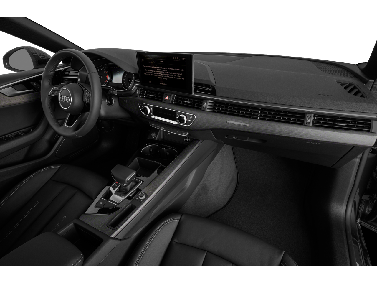 Our A5 Premium provides a haven of driving pleasure with a stylish leather-trimmed interior with luxurious amenities. A suite of features, including heated power front sports seats, a multi-function steering wheel, keyless ignition, and tri-zone automatic climate control, ensure every drive in our Audi feels incredible. You'll also appreciate how easy it is to use its full-color MMI touchscreen infotainment system, which lets you stay seamlessly connected and entertained with Bluetooth®, Android Auto®, wireless Apple CarPlay®, USB inputs, and concert-quality audio.