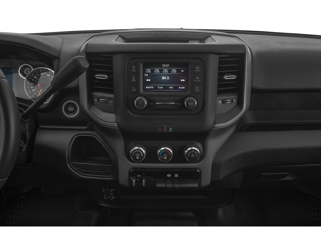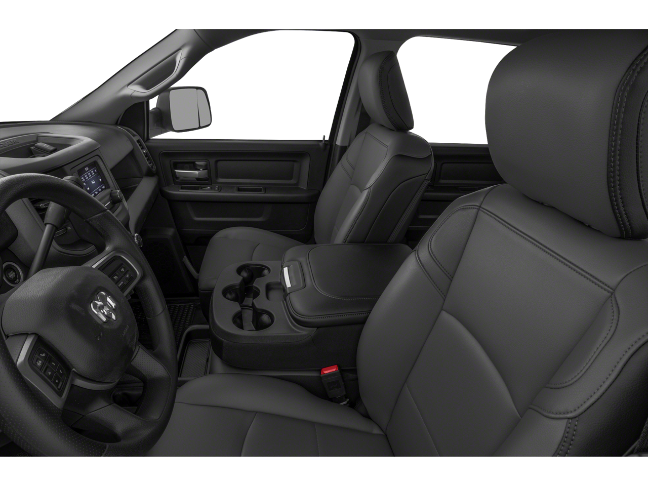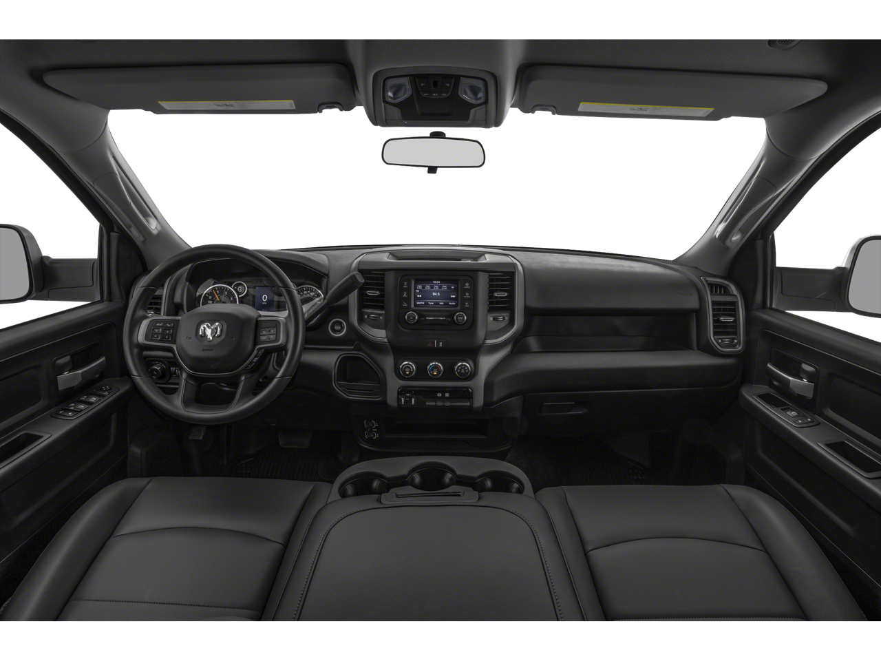 Our Big Horn cabin has key benefits for better trucking, starting with supportive cloth seats, air conditioning, power accessories, cruise control, a 12V power outlet, a 3.5-inch color driver display, and keyless access/ignition. A Uconnect® infotainment system answers the call for digital convenience with an 8.4-inch touchscreen, voice control, WiFi compatibility, Android Auto®, Apple CarPlay®, and a six-speaker sound system.