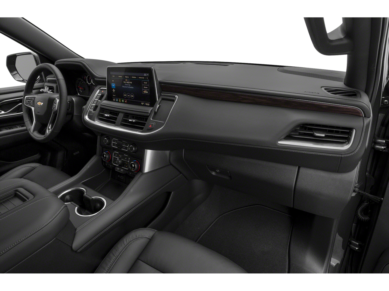Our LT cabin is practically perfect for big families, thanks to its heated leather power front seats, versatile second and third rows, a wrapped steering wheel, tri-zone automatic climate control, cruise control, keyless access/ignition, and remote start. Ready to connect, our Tahoe's infotainment system includes a 12-inch driver display, a 10.2-inch touchscreen, WiFi compatibility, Google Built-in, wireless Android Auto®/Apple CarPlay®, Bluetooth®, voice command, wireless charging, and Bose audio.