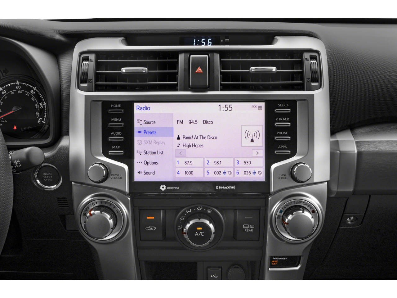 A sophisticated and functional look is on display in our SR5 cabin with comfortable cloth seats, eight-way power for the driver, a leather-wrapped steering wheel, air conditioning, keyless access/ignition, and a handy 100W/400W AC outlet in the spacious cargo area. Entune infotainment enables quick connections with an 8-inch touchscreen, Bluetooth®, Android Auto®/Apple CarPlay®, WiFi/Amazon Alexa compatibility, voice control, and an eight-speaker sound system.
